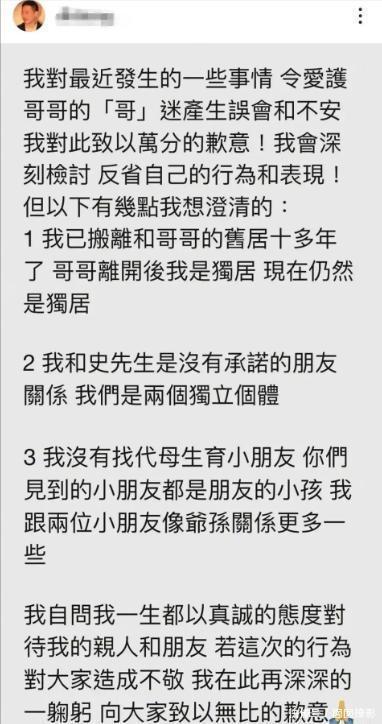 后来唐鹤德澄清称已搬离张国荣旧居多年,与史先生只是朋友关系,也否认了代孕传闻。